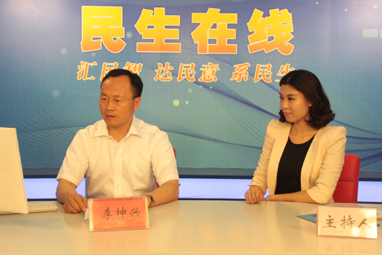 青岛市工商局副局长李坤兴(左一)与网民在线交流 (周琦 摄)