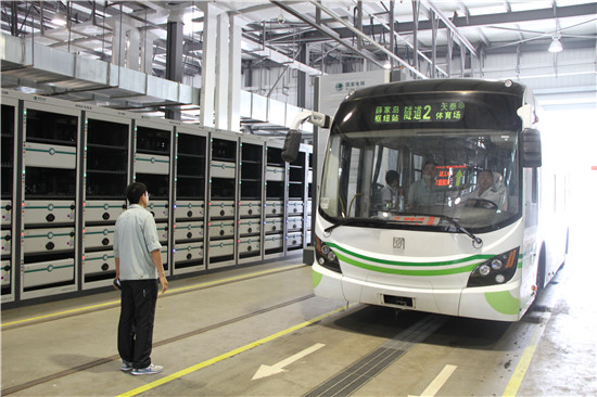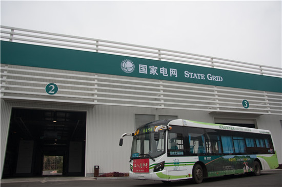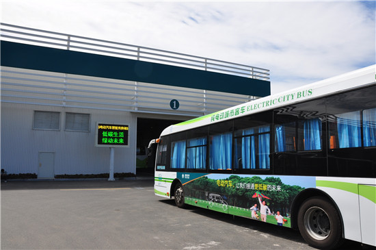 换电后的电动公交车驶出充换电站