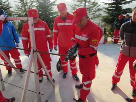 为进一步提高“沧鹰”地震应急救援志愿队的救援能力,青岛市李沧区地震局于2015年12月3日至5日组织了第五期救援队综合训练。参训队员44名。首先在区政府进行了救援理论集训和队歌训练;之后,将参训队员和主要装备拉动到青岛市防震减灾科普教育基地,充分利用基地地震模拟训练场,进行了系统的生命探测、钻凿切割、液压撑顶剪切等救援技能训练和应急照明、队列训练。通过强化训练,使队员熟练掌握了地震应急救援理论知识、救援技巧和各类救援设备的使用,具备了随时执行地震救援任务的能力。李沧区地震局负责同志进行了地震救援理论知识和救援案例授课。李沧区政府郑海涛副区长、青岛市地震局郭玉贵副局长、于法卫副局长到现场观摩指导。