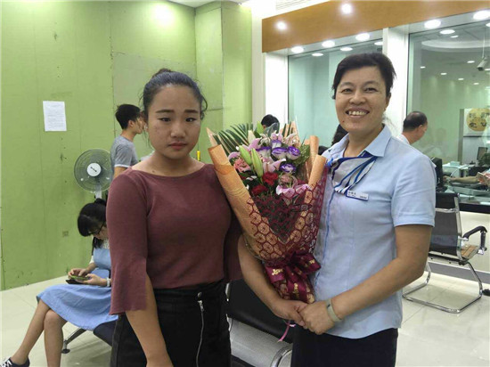 2016年12月18日,两位八十多岁的老人拄着拐杖,相互搀扶着,颤颤巍巍的来到了贵州路支行,老太太的眼睛还看不见而且刚做了心脏手术——但他们特意从家里赶过来,感谢柜员包秋霞保住了他们40万准备买房子的现金。