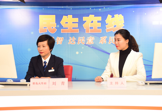 青岛火车站副站长兼北站站长刘青(左一)与网友交流 (摄影 孙志文)