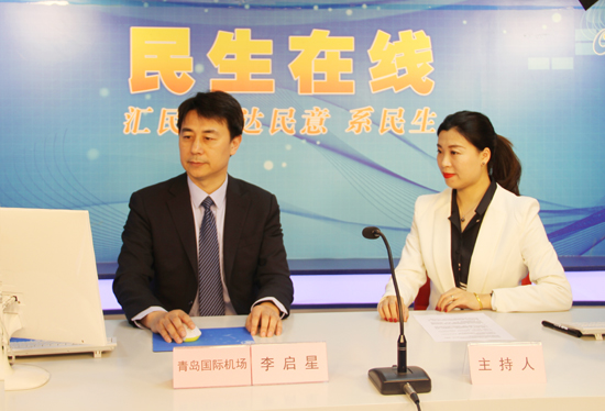 青岛国际机场集团副总李启星(左一)与网友交流 (摄影 荆潇坤)
