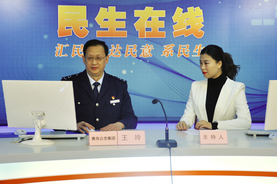 青岛公交集团有限责任公司总经理王玲(左一)与网友交流 (摄影 于泓)