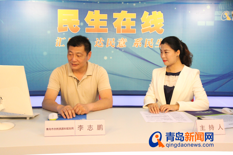 青岛市自然资源和规划局副局长李志鹏(左一)与网友交流 (摄影荆潇坤)