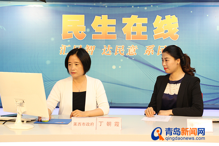 莱西市政府副市长丁朝霞(左一)与网友交流 (摄影江东旭)
