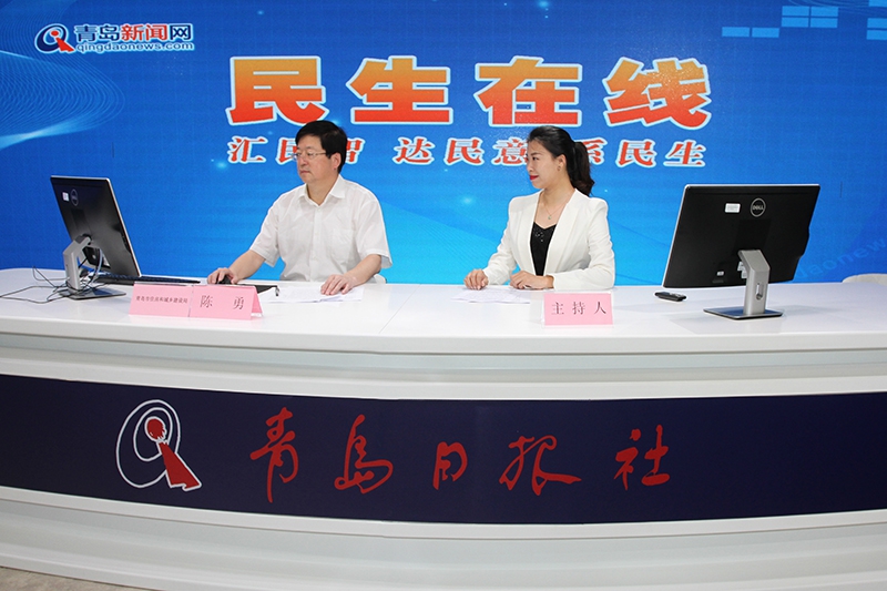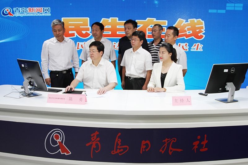 青岛市住房和城乡建设局党组书记、局长陈勇(左一)和民生在线网友在线交流。