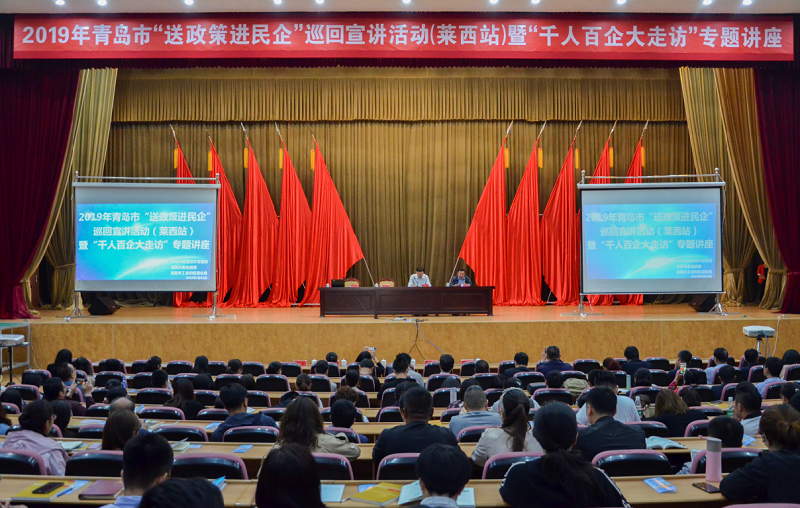 2019年初,全市“壮大民营经济”攻势首场战役——青岛市民营经济政策宣讲战打响。这次宣讲集结了市财政局、市人力资源和社会保障局、市地方金融监管局、市发改委、市科技局、市工信局、市税务局、市行政审批服务局、市商务局9个部门的专家进行政策解读,400多人现场参加会议,15万人次通过青岛电视台蓝睛、青岛新闻网和青岛民企之家微信视频同步观看直播。与此同时,活动现场向参会单位和企业发放了《青岛市民营经济政策一本通》(以下简称《一本通》)500余册。
