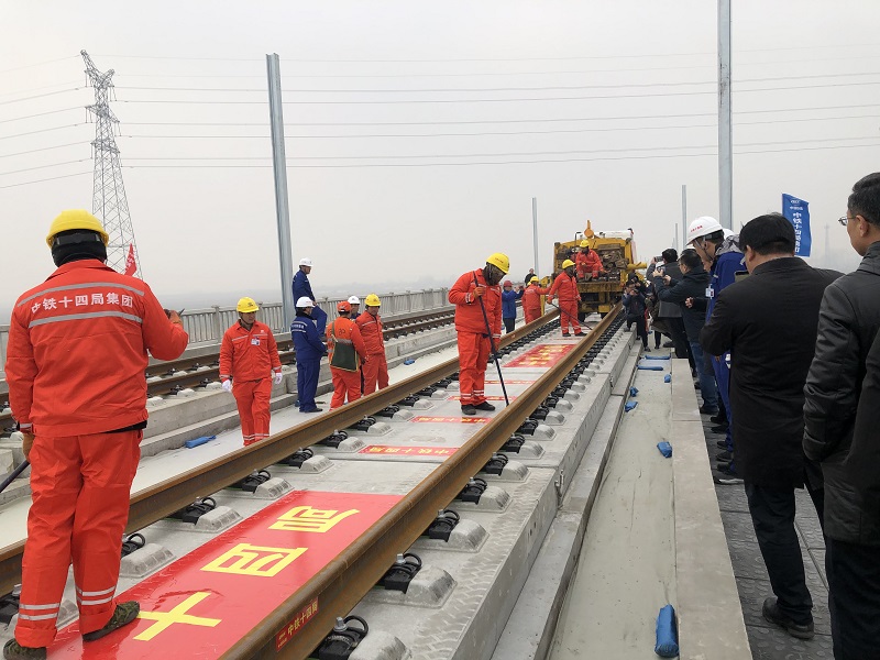 潍莱高铁铺轨现场