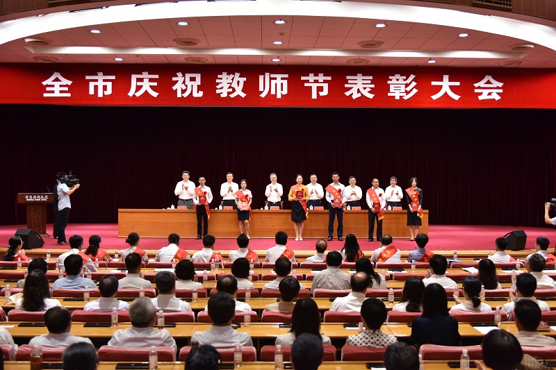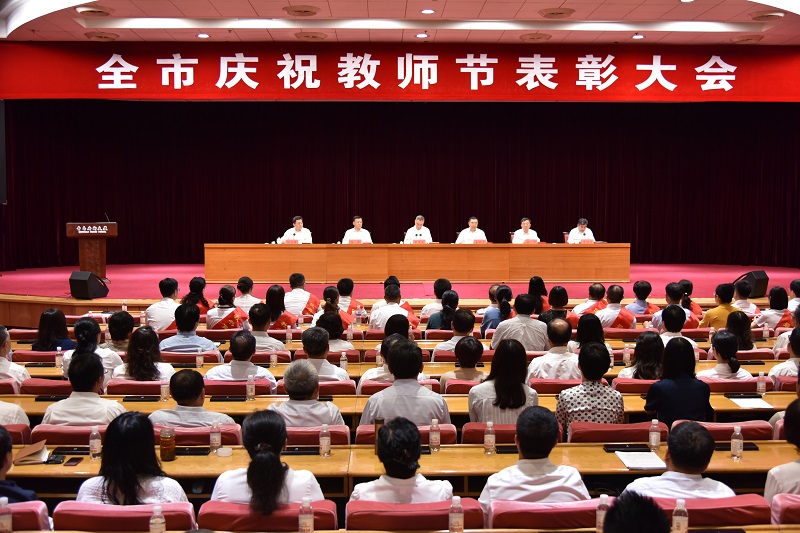 9月3日上午,青岛市召开全市庆祝教师节表彰大会。省委常委、市委书记王清宪出席大会并讲话。市人大常委会主任宋远方、市政协主席杨军出席。与会领导分别为青岛市优秀教师、优秀教育工作者、最美教师、教书育人楷模代表颁奖。王清宪代表市委市政府,向全市广大教师和教育工作者致以节日问候和崇高敬意,向长期以来关心支持我市教育事业发展的社会各界人士表示衷心感谢。各级各部门要深入学习贯彻习近平总书记关于教育工作的重要论述,认真落实全国、全省教育大会精神,把教育放在优先发展的战略地位,努力让青岛的教育与城市战略定位、发展水平、文化气质相匹配,办好让人民满意的教育。