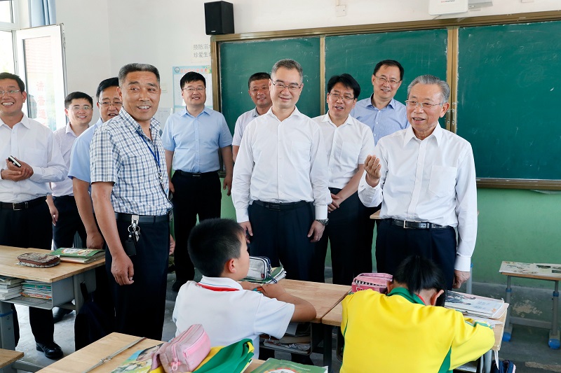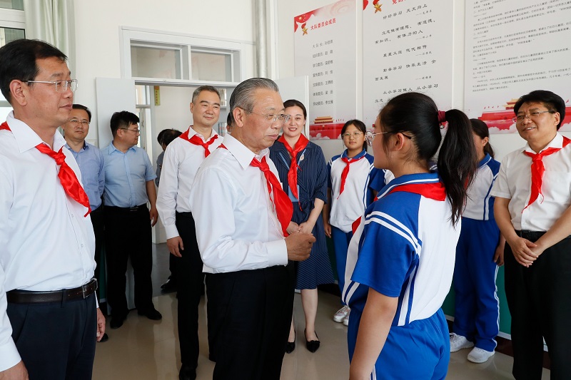 2019年5月29日,省委书记刘家义来到莱西市姜山镇绕岭小学、前山小学,代表省委、省政府向全省少年儿童致以节日祝贺。刘家义详细了解了学生在校生活、教师待遇等情况,参观了学校红色文化博物馆,听取学校传承红色基因教学实践情况介绍。刘家义走进教室,与学生亲切交流,关心地询问他们的学习生活情况,勉励他们要努力学习中华优秀传统文化,从中汲取营养、陶冶情操。刘家义勉励教育工作者要牢记总书记嘱托,将立德树人融入思想道德教育、文化知识教育和社会实践教育各环节,培养少年儿童从小热爱党、热爱祖国、热爱人民,成为德智体美劳全面发展的社会主义建设者和接班人。刘家义叮嘱学校负责同志,一定要强化安全意识、底线思维,确保学生饮水饮食安全、校车安全、校园及学校周边安全;搞好校园卫生,为学生营造干净舒适的学习环境。