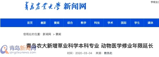 青岛新闻网3月4日讯(记者韩彤彤)近日,教育部下发《关于公布2019年度普通高等学校本科专业备案和审批结果的通知》(教高函〔2020〕2号),青岛农业大学组织申报的“草业科学”专业(专业代码:090701;学位授予门类:农学;学制:四年),通过审批,准予设立。青岛农业大学“动物医学”专业(专业代码:090401;学位授予:农学;学制:五年)申报专业修业年限由四年制调整为五年制,也通过审批,准予设立。至此,青岛农业大学本科专业数量为80个。
