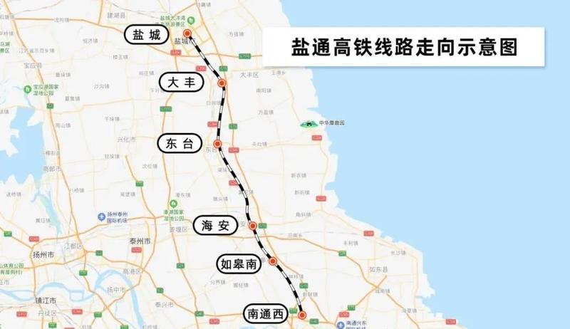盐通高铁北连青盐铁路、南接沪苏通铁路,是我国“八纵八横”高速铁路网中沿海通道的重要组成部分,由盐城站向南连接南通西站,正线全长156.6公里,设计时速350公里,目前已完成正线铺轨,全线将于12月底开通运营。
