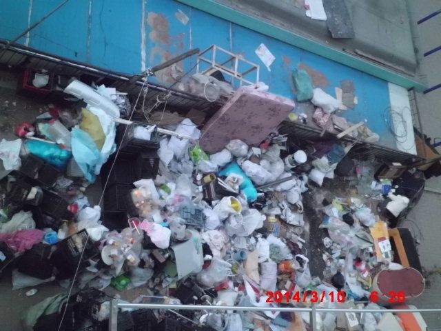 感谢网友的监督:此废品是夹岭沟14-2-102户万某收集,万某以收废品为生,2013年街道已经给予清理过几次,街道城管科、城管中队多次劝说不要在此收废品,已免影响周边邻居生活,万某对街道的劝学和邻居怨言置之不理。 2014年3月初,街道城管科、城管中队要求万某尽快处理自己收集的废品。如万某不清理,街道将组织力量尽快清理,给居民干净环境!