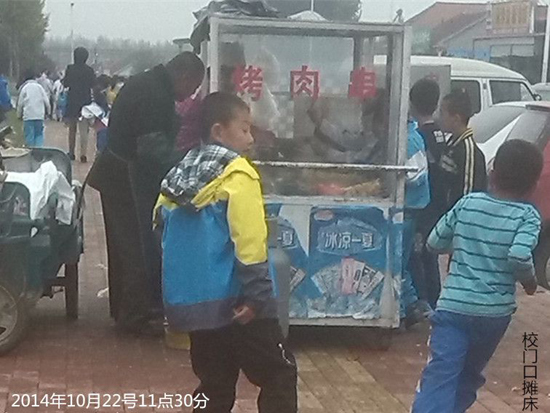 网友“舌尖上的安全卫士”发帖道:“王台小学和中学门前乱摆乱卖摊点和以托管名义无证经营快餐现象非常严重。每天中午11点20分以后不少摊贩在校门口和通往校门交通要道占道设摊,所卖食品没有经过卫生检验,油炸烧烤食品等都是现场制作,摊周围油污煤灰满地,摊主拿完钱不洗手直接拿食品给学生。此占道乱卖现象存在极大交通安全和食品安全隐患。