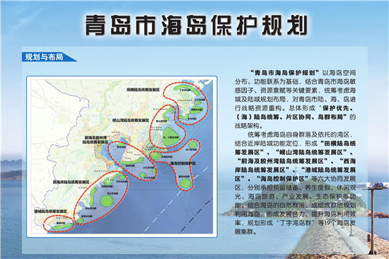 编制完成《青岛市海岛保护规划》,构筑了“一带两区六组团”的海岛空间总体布局。