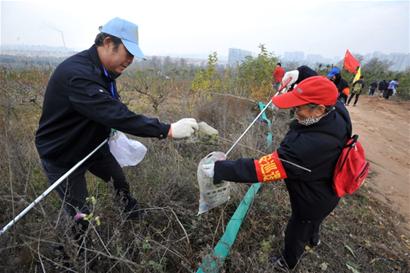 11月19日,市北浮山新区街道400多名志愿者登上浮山,通过环保登山的方式,清理散落在山上的白色垃圾,提升浮山生态公园的环境。据介绍,浮山生态公园市北区域规划建设的10条景观路已具雏形,总工程进度近半,预计明年9月前全部完工。