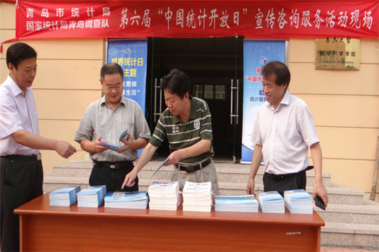 第四版块:开放日进高校活动。9月20日青岛市统计局、国家统计局青岛调查队在青岛大学联合举办了校园宣传活动。举办统计公开课,对在校学生进行居民收入、CPI等民生统计指标的普及和宣传;向师生赠送《民生统计面面观》、《漫画统计学》、《掌上市情》、《走进青岛调查》等宣传材料,并就统计有关问题进行了现场解答。