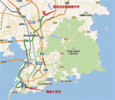 ●交通条件:城阳十五中与青岛实验高中同在硕阳路上,距离2公里左右,通达9条公交线路。学校正与有关部门联系延长公交线路,学校建议将103路车、306路车、373路车起始站点延伸到青岛实验高中,设立青岛实验高中站点;将905路车、912路车、913路车、915路车、928路车、933路车等路线部分车辆的起始站点延伸到青岛实验高中车站。学校还将与公交部门协商安排学生放学专车