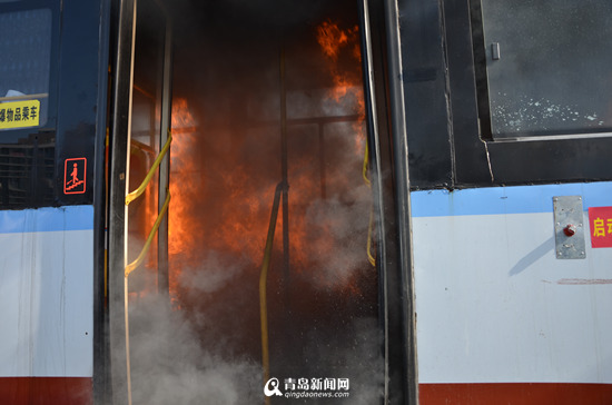 青岛新闻网3月22日讯 21日15时许,新型公交车消防安全防护系统在青岛公交集团麦岛停车场接受测试。测试现场,工作人员向一辆安装了该消防系统的报废车辆倒入汽油并点燃,瞬间燃起大火,随即工作人员启动了车厢内的灭火装置,车厢上方腾起水雾,四五秒后大火熄灭。据了解,如果该消防系统实验效果良好,青岛有望在公交车上安装或引进安装了该系统的新型公交车。