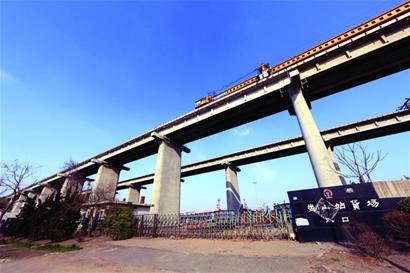 昨日下午,记者驱车来到青荣城际娄山特大桥附近,该桥梁的架梁工作基本完成,仍有部分工人在忙碌地施工,为全线T梁架设早日完工努力。据了解,胶济客专娄山特大桥位于青岛北站至城阳间,南起青岛火车北站以北2公里处,北至白沙河附近,是青荣城际铁路进入青岛火车北站的连接线,共计126跨,占新建线路桥梁工程的近90%。去年已架设娄山特大桥49跨,为保证早日开通胶济客专的目标,项目调整思路积极协调,按照建设指挥部要求决定新增一台架桥机以确保顺利达到开通目标。