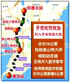 据悉,该项目已于2010年3月18日正式开工,济南方向(即墨至荣成段)于2014年12月28日开通,初期就开行了11对动车组列车,主要是从荣成开往北京、上海、济南等方向。青荣城际铁路即墨至荣成段通车后,即墨至青岛段即引入青岛枢纽工程一直在加快施工中。据了解,青荣城际铁路引入青岛枢纽工程全长16公里,包括娄山特大桥、城阳站站改和正线并入胶济客专三部分。其中利用既有胶济铁路约10公里,新建6公里。娄山特大桥是枢纽工程中唯一的控制性工程,全长4027米,占到新建部分的三分之二。 (记者 李德银)