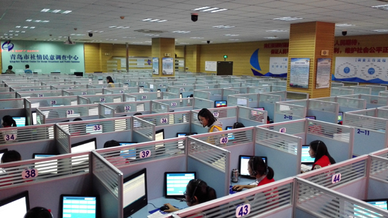 市统计局始终把社情民意调查中心建设作为党委政府与社会各界密切联系的桥梁纽带,今年市政府又投资500余万元,对调查中心进行了扩容建设,访问席位达到120席位,访问员资源库扩大到1000名,调查软、硬件建设水平在全国统计民意调查系统处于领先地位,真正实现了电话调查、监控调度、视频会商、教育培训等四位一体的功能,在我市召开的全国、全省社情民意调查系统现场会上被誉为“青岛模式”。