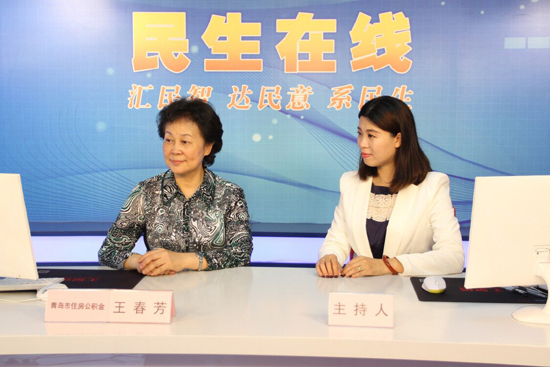 青岛市住房公积金管理中心党组书记、主任王春芳(左一)与网友交流 (摄影 周琦)