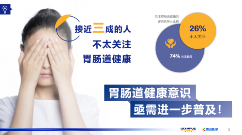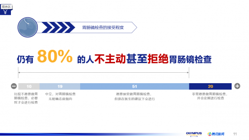 在启动仪式上,丁莹女士还发布了《2018胃肠镜筛查认知与行为调研报告》,引发了在场媒体的热切关注。从2010年开始,奥林巴斯每隔两年向媒体定期发布“全国肠胃健康调研报告”。今年的调研项目奥林巴斯联合了腾讯新闻共同进行,共选取了8个城市,超过1600份的有效网络调研数据,直观展示当前国人的肠胃健康状况和对内窥镜检查的认知程度。