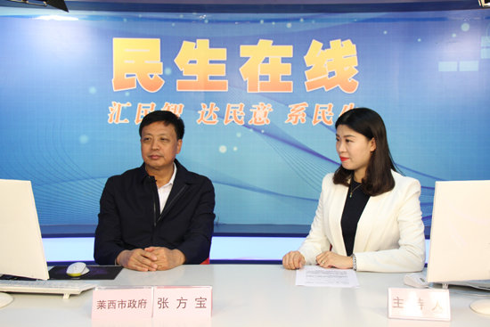莱西市政府副市长张方宝(左一)与网友交流 (摄影 周琦)