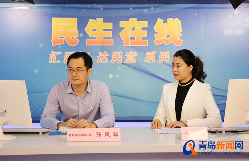 中国移动青岛分公司副总孙凤华(一左一)与网友交流 (摄影 荆潇坤)