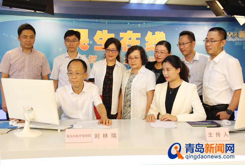 青岛市医疗保障局党组成员、副局长刘林瑞(一排左一)与网友交流 (摄影荆潇坤)