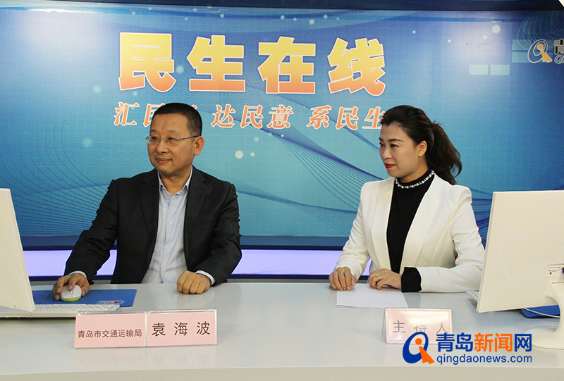 青岛市交通运输局党组成员、市道路运输管理局局长袁海波(左一)与网友交流 (摄影荆潇坤)