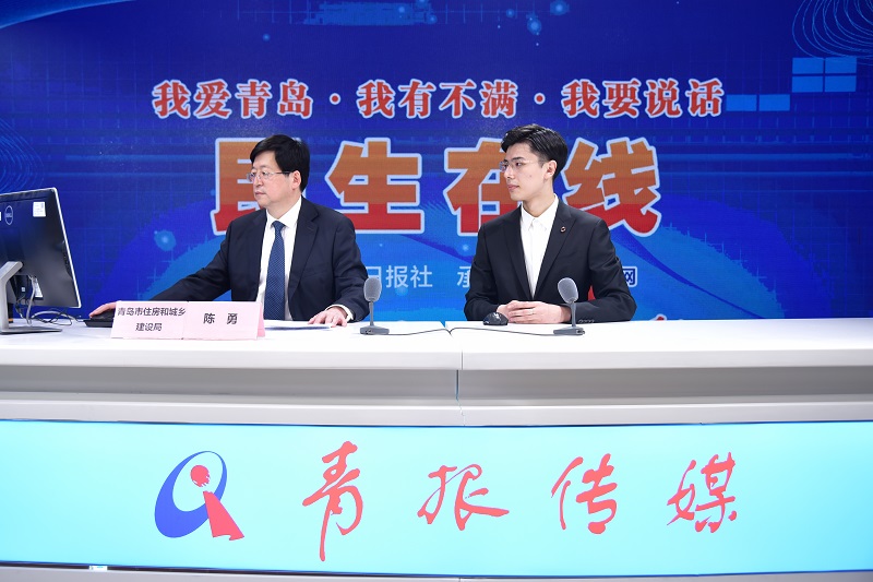 青岛市住房和城乡建设局党组书记、局长陈勇(一排左一)与网民在线交流 (摄影 陈通)