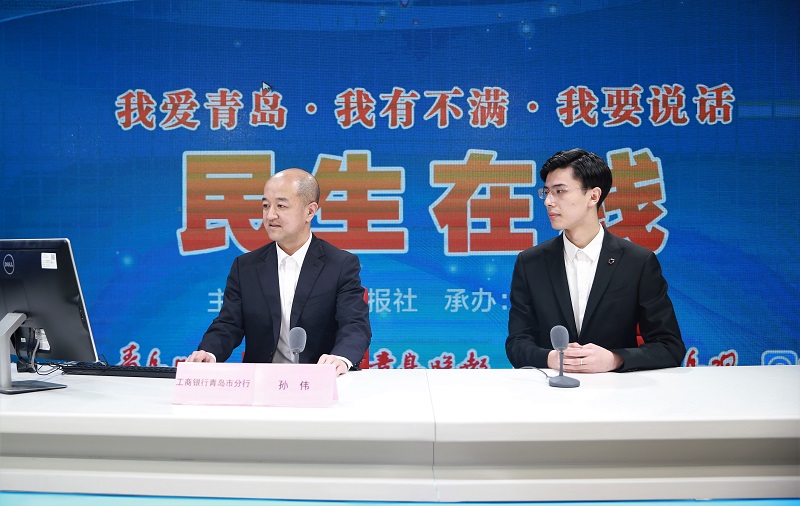 中国工商银行股份有限公司青岛市分行副行长孙伟(一排左一)与网民在线交流 (摄影 宁冠宇)