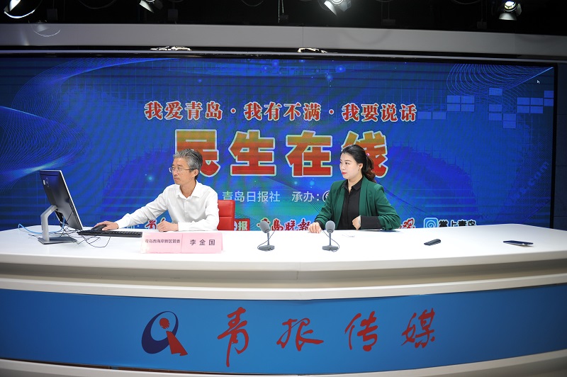 青岛西海岸新区副区长李金国(左一)与网民在线交流 (摄影 张力伟)