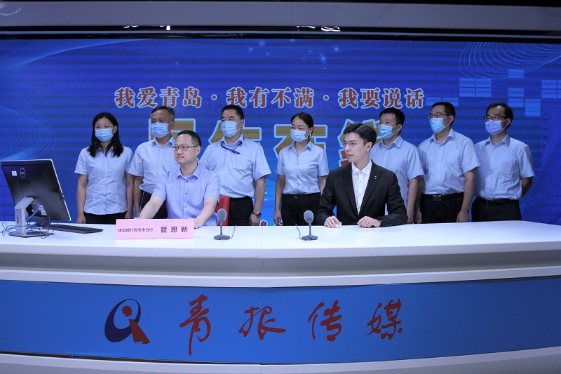 中国建设银行青岛市分行党委委员、副行长管恩新(一排左一)与网民在线交流 (摄影 宁冠宇 )