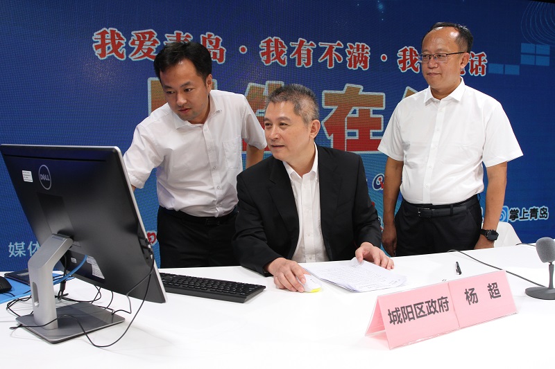 城阳区委常委、副区长杨超(中)与网民在线交流 (摄影 宁冠宇)
