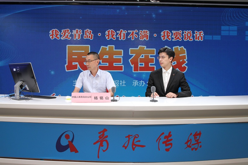 中国人寿保险股份有限公司青岛市分公司副总经理杨铭山(中)与网民在线交流 (摄影 宁冠宇)‍