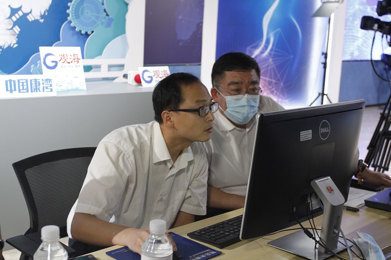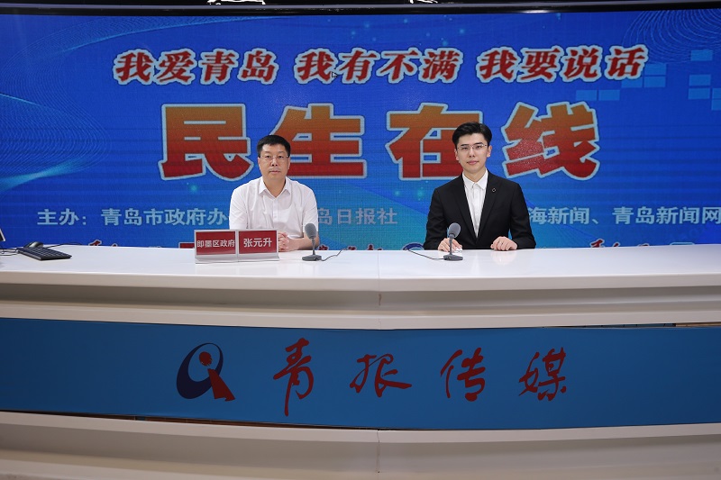 即墨区委副书记、区长张元升(左一)做客民生在线(摄影樊蓉)