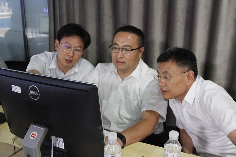 即墨区委副书记、区长张元升(左一)做客民生在线(摄影樊蓉)