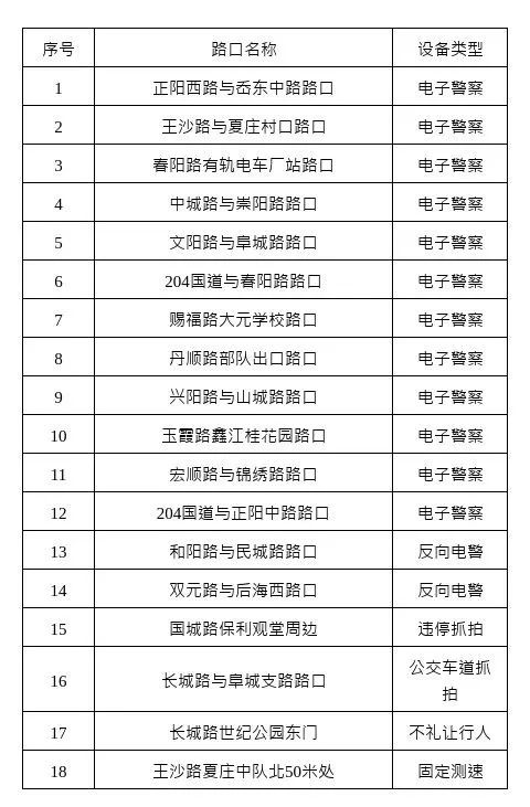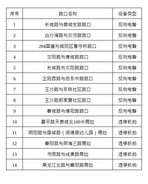 12月1日,城阳交警发布公告,为进一步规范交通技术监控设备使用,依法收集、固定道路交通违法行为证据,有效预防和减少道路交通事故,确保道路交通有序、安全、畅通,青岛市公安局城阳分局交通警察大队将新增14处、复用18处交通技术监控设备。现对新增设备和复用设备予以公示,自公示之日起15日后将对有关交通违法行为进行依法管理,请广大交通参与者自觉遵守道路交通法律法规,共同维护良好的道路交通环境。